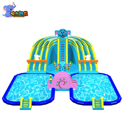 The Elephant Water Park is a large inflatable water amusement facility that combines inflatable slides, themed designs, and interactive water play. The product features a bright yellow and blue color scheme, complemented by a cute elephant-themed design, creating a colorful and fun water castle. It is an eye-catching tool for commercial operations, community events, and family parties, providing children with a continuous thrilling and joyful play experience.