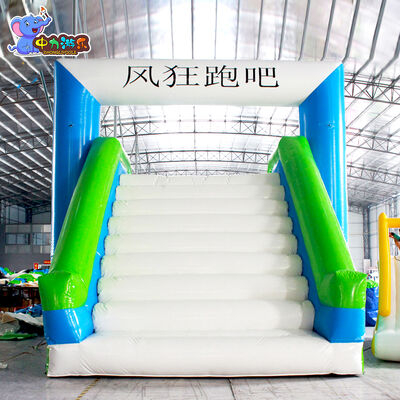 The inflatable slide is themed "Running Challenge", integrating green, blue and white wave patterns to create a sense of speed and vitality. The inclined slide is combined with a non-slip climbing surface, offering both the thrill of sprinting and a safe climbing experience. The prominent slogan "Ride with the Wind" at the top stimulates the competitive spirit of the participants.