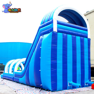 "The Blue Sea Double Track" inflatable slide is an interactive amusement facility specially designed for outdoor water play. The product features a fresh blue and white color scheme as its main color. The top has an arched design combined with a double-track structure, and the end is connected to a blue buffer pool. The overall design is simple and lively. It is suitable for scenarios such as theme parks and commercial plazas during summer activities, providing children with a safe and thrilling water play experience.