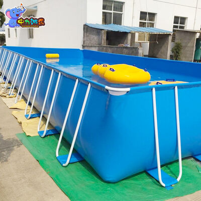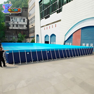 The outdoor fun support swimming pool is a large water play facility specially designed for family and children's entertainment. The product features a blue and green pool body design, combined with white reinforced supports, presenting a fresh and bright overall appearance. The pool is equipped with pink handrails and stairs, as well as fun banana boats floating on the water surface, creating a safe and enjoyable outdoor water play experience for children. It is suitable for courtyards, communities, resorts, etc., and is an ideal choice for summer family activities.