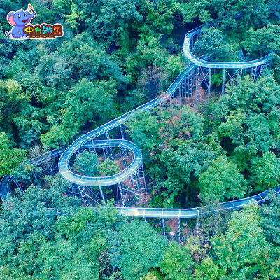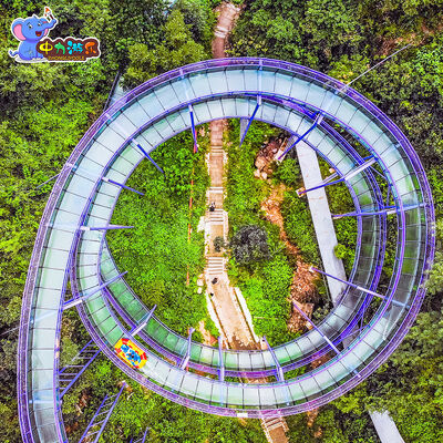 The glass water slide is specially designed for mountainous scenic areas, theme parks and eco-resorts. It combines the thrilling and exciting spiral sliding experience with panoramic transparent viewing, creating a landmark outdoor water amusement equipment that integrates high-altitude viewing, rapid rotation and landscape appreciation.