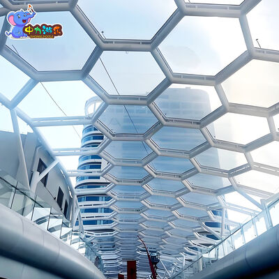 All-weather operation coverage: The steel membrane structure provides shade, rain protection, and snow protection for the below-ground amusement facilities, extending the service life and operation time of the equipment