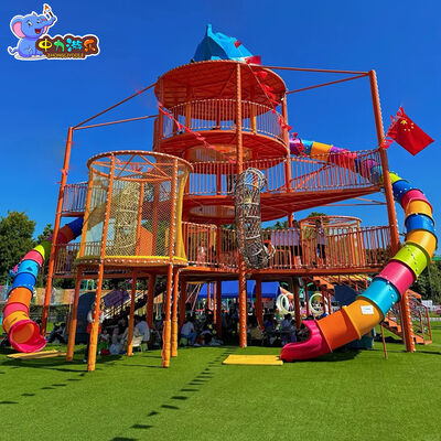 The iconic "fairy tale castle" serves as the core, integrating climbing nets, spiral slides, and viewing platforms. The colors are bright (mainly in pink, white, and blue), combined with European-style towers and perforated flower arches. It is both a visual highlight and a place for parents and children to take photos.